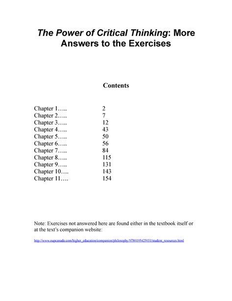 Read Power Of Critical Thinking Full Exercise Answers Bing Kindle Editon