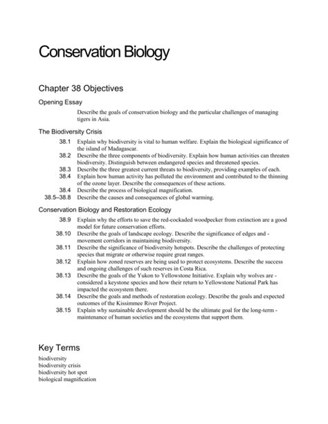 Read Online Conservation Biology Chapter 38 Worksheet Answer Key Epub